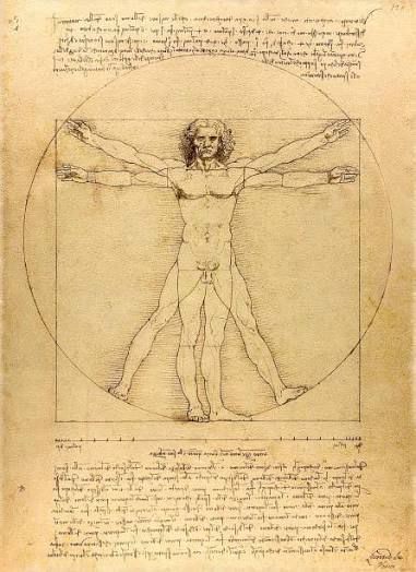 Fakti që një trup i vetëm mund të përshtatet në të dyja format, është deklarata e Leonardos, njeriu është pika e ndërmjetme midis tokësores dhe hyjnores. Por Leonardo nuk u mjaftua me ide simbolike. Ai bëri matje reale të trupit njerëzor, duke kërkuar përpjesëtime të sakta. Në shënimet e tij ai përmend: